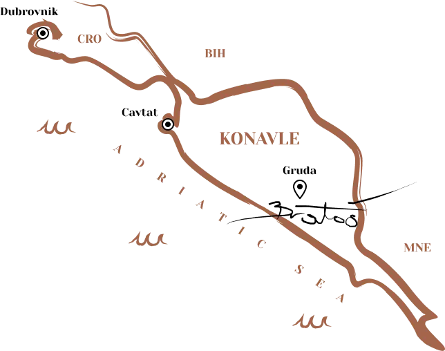 The vineyards of the Bratoš family are located in the southeastern part of the historic Konavle field cultivated in the time of the Dubrovnik Republic, protected by the Sniježnica mountain from strong Dinaric winds.